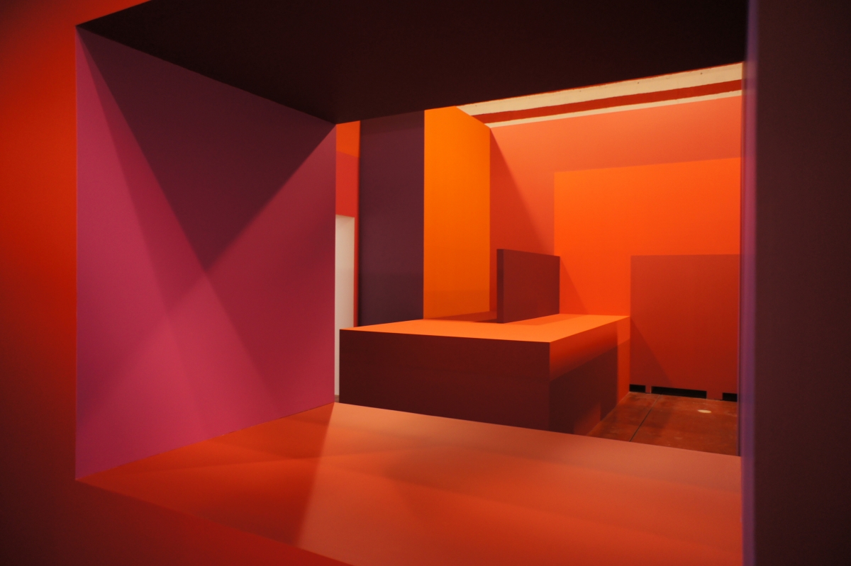 10 décembre 2011, le second «A space in color»2 du 24 mai au 21 juillet 2012. La plupart des pièces sont constituées de matériaux de construction ou de notre environnement bâti. Elles se réfèrent à un contexte au sens large de notre environnement contemporain. C’est la singularité des assemblages qui construit une spatialité locale. Dans le second volet, les artistes ont construit des environnements dans l’espace d‘exposition, évoquant extérieur, voire même un espace absolu. Le geste est en lien avec l’architecture, créant ainsi des sculptures-architectures. En choisissant des pièces-objets et des pièces-architectures aux potentiels émotionnels et spatiaux forts, c’est un jeu des intensités, et des bonnes distances entre ces dernières auquel la commissaire s’est adonnée. L’intensité, c’est d’abord celle de la couleur. On appréhende «à fleur de peau» la topographie complexe des formes enchevêtrées. Le travail de la commissaire a consisté en particulier à ajuster les bonnes distances entre les pièces à l’intérieur d’une même exposition. Ainsi, c’est le mode haptique de perception des œuvres qui peut être modulé, une «possibilité du regard», pour laquelle on ne peut dissocier l’œil du toucher. Elle nécessite du spectateur un rapprochement fort, aller voir au plus près, au point d’avoir par la vue presque le sentiment de contact. Dans le premier volet de l’exposition, les objets ont en commun une charge émotionnelle, même si cette dernière est maintenue dans ses gonds. Dans le second volet, le contact se fait par immersion du visiteur dans la couleur ou parmi les traits colorés. Mais l’expérience des pièces ne se limite pas à une expérience sensible. Des pièces que je peux réellement et physiquement voir ne peuvent être appréhendées et comprises que conceptuellement. Le concept prend le pas sur la réalité sensible, l’abstraction supplante la figuration.