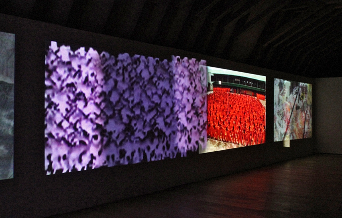 L’accrochage se termine par deux œuvres installées dans les combles, un cadre magnifique. More Wrongs Things (2000-2001), composée de quatorze moniteurs qui projettent en boucle des images de chaos et des extraits d’expériences anciennes de l’artiste, désoriente notre compréhension des représentations, en écho au chaos médiatique. Différentes figures du désastre s’entrechoquent avec la libération du corps humain. La dernière pièce, Precarious (2009), nous englobe au contraire dans les images, par un mécanisme de projection mouvante et de répercussion sur des miroirs, qui s’entrechoque avec l’environnement sonore. L’ours enchaîné, le perroquet à la danse frénétique, des prisonniers philippins et l’artiste elle-même composent des registres de danse variés, entre une danse libératrice et une autre qui enferme, en raison de la violence imposée par la prison, la folie ou l’esclavage. La fragmentation des figures, leur stratification et le mouvement permanent des projections permettent de garder l’énergie à l’œuvre dans tous les fragments et de les fusionner partiellement.