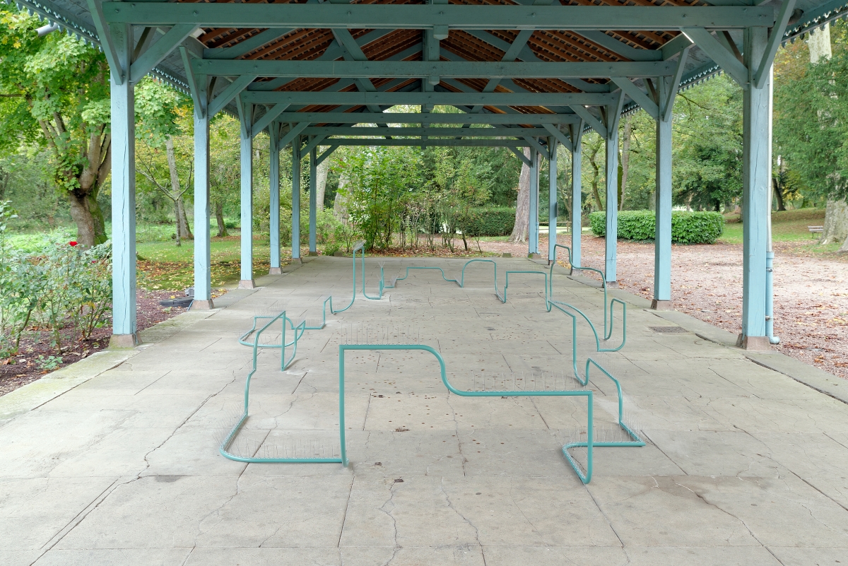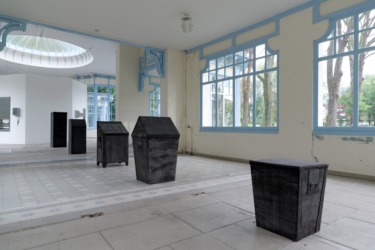 With "bottled water branded water", the Parc Saint Léger provides the artist with his first monographic exhibition in France. While the artworks presented on the stand of his galleries during the recent editions of FIAC made a strong impression through their formal mastery2, a major element remained obscured: the connection to context, which is nonetheless the focal point of his work and the driving force behind all of his exhibitions. At the Parc Saint Léger, a former thermal spa whose bottling activities and sale of spring water thrived on the site until the 1970s, the artist developed a series of micro-histories relating to the local context. By extension, they illustrate a phenomenon on the global scale: the commercial use of a vital natural resource. The to-and-fro relationship engaged between local and global is also played out on the scale of each work, which are autotelic, while also remaining entirely focused on the framework to which they belong. The same can be said of the soberly referential titles, which simply make reference to their location through a classification system comprising digits and letters. Each element belonging to the composition of the assemblages can be read like a clue, or more precisely, like a sign3; pointing to an elsewhere, a verbal horizon of the subject, but without ever really naming it. The artist effectively reminds us that each object or material is loaded with added value, carting along with it the weight of the socio-cultural determinations that each and every one of us mechanically associates with it.4