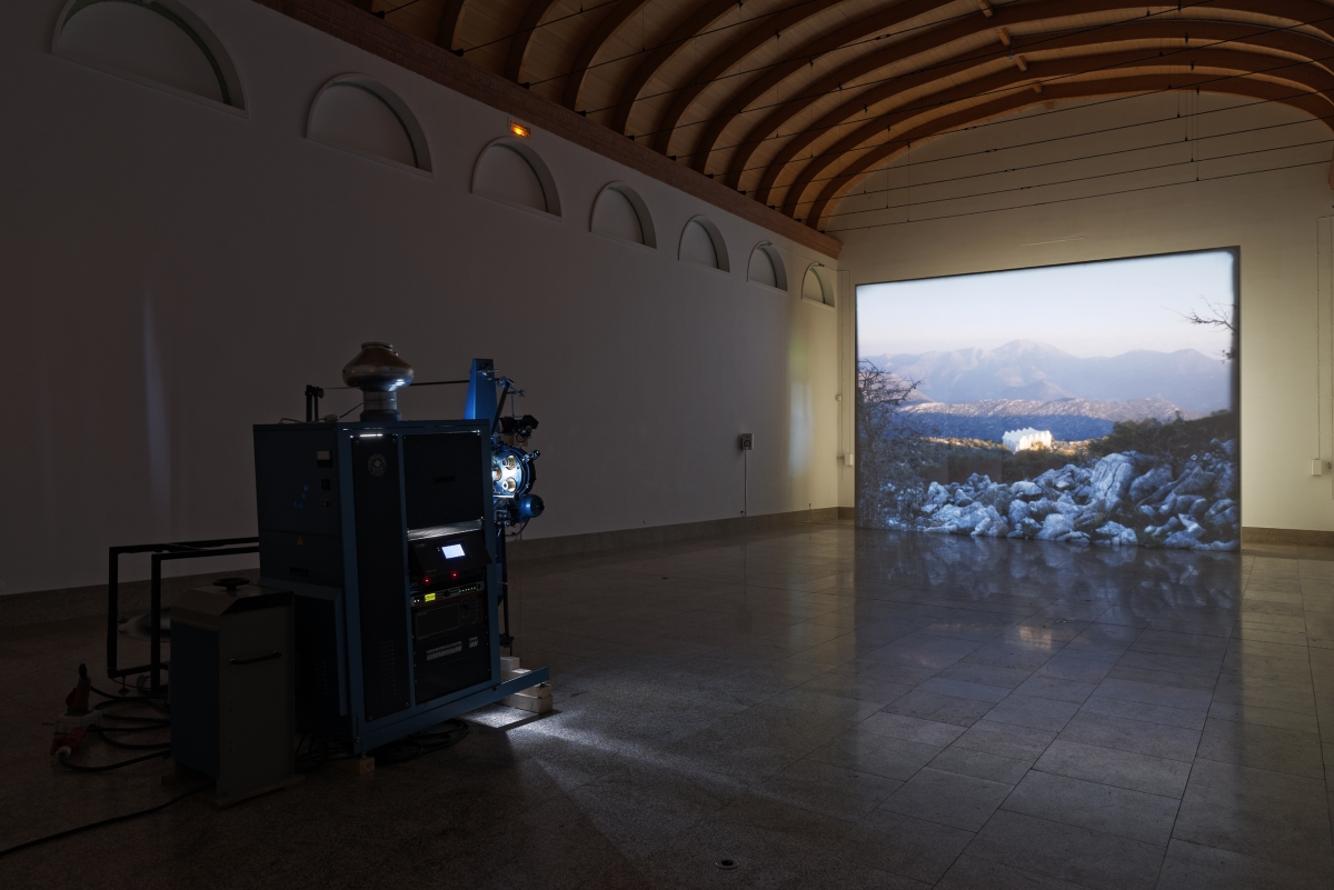 The exhibition also takes the form of a kind of homage to Jean-Daniel Pollet, beyond the double of Bassae: the reiteration of the sequences, the systematic camera movements, the intermingling of machines, landscapes and minerals in Giraud & Siboni’s films resonate like an echo of Pollet’s film Mediterranée (1963).