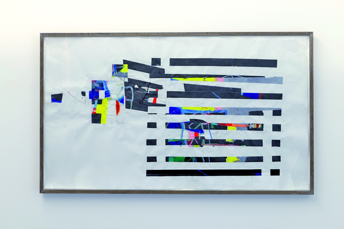 In the age of the avant-gardes, the fragmentation of the body defied the classical canons, but could not represent the alienation of flesh better under the reign ushered in with technology. These fragments are scattered in Sarah Tritz’s work, pulverised by contradictory temptations – the explosion of aesthetic possibilities that have all been tested before. But it seems like the threads try to mend them, paint tries to unite them, and humour tries to round them off. They awaken, everywhere, in a sleeve button delicately placed atop a sculpture in the form of a newspaper stand, a small photo of feet in a basin, an abstract geometric painting mischievously entitled The Venetian Blind (a blind used for spying) through to the immodest buttocks in the collage wrought into an icon, on the small mezzanine, where the exhibition visit ends with a promise of reincarnation.