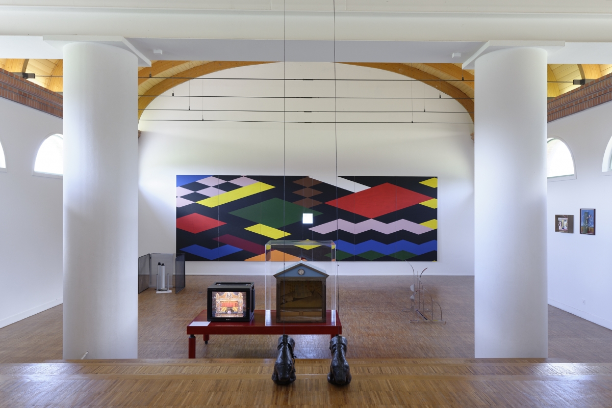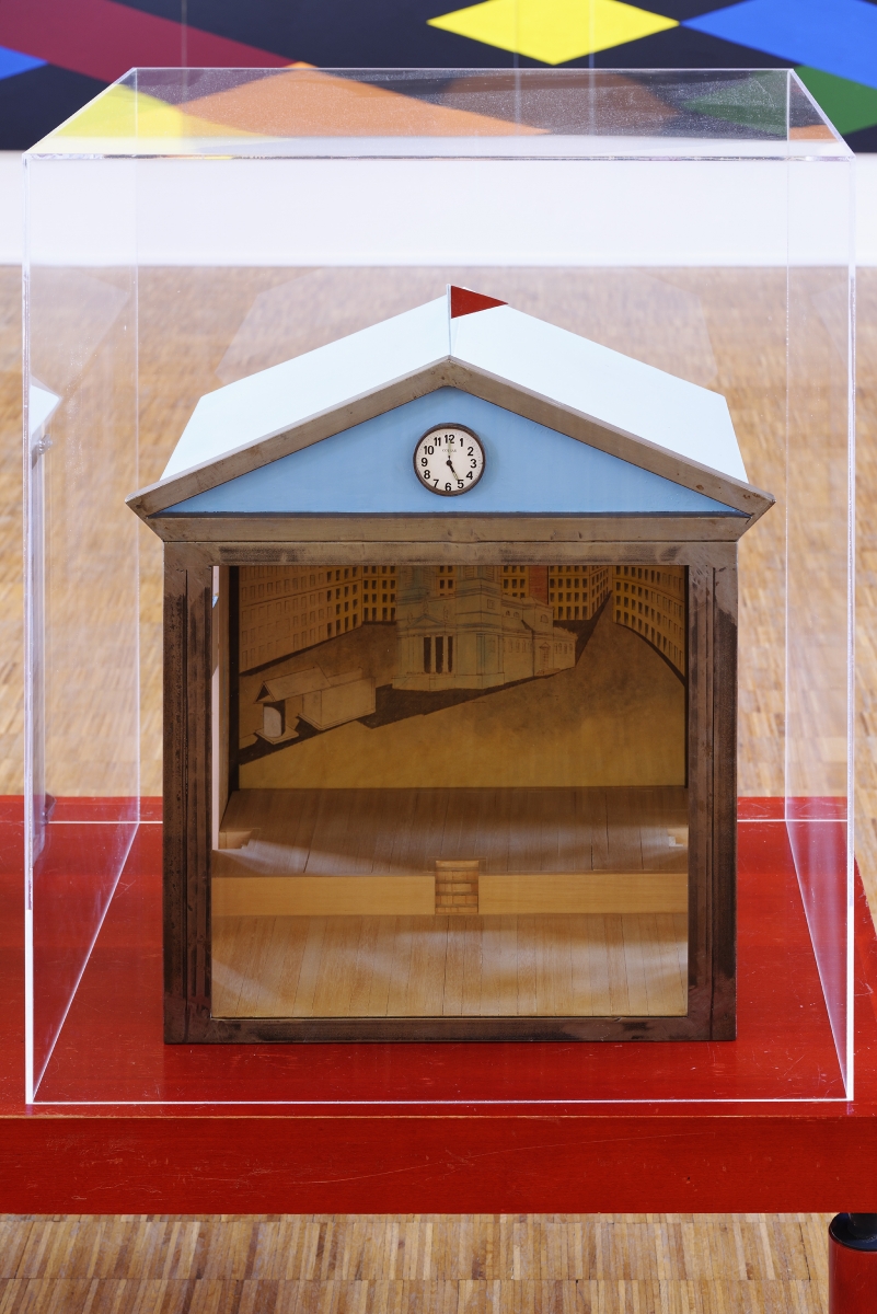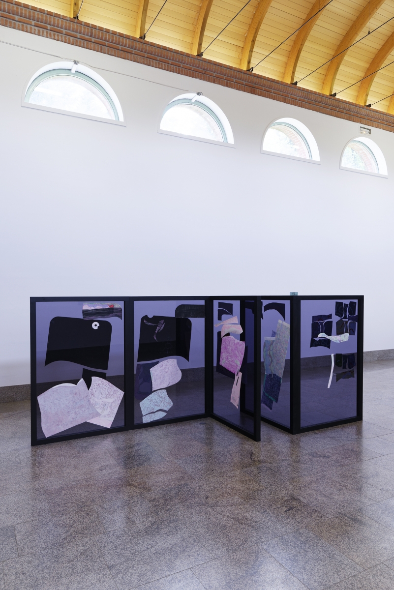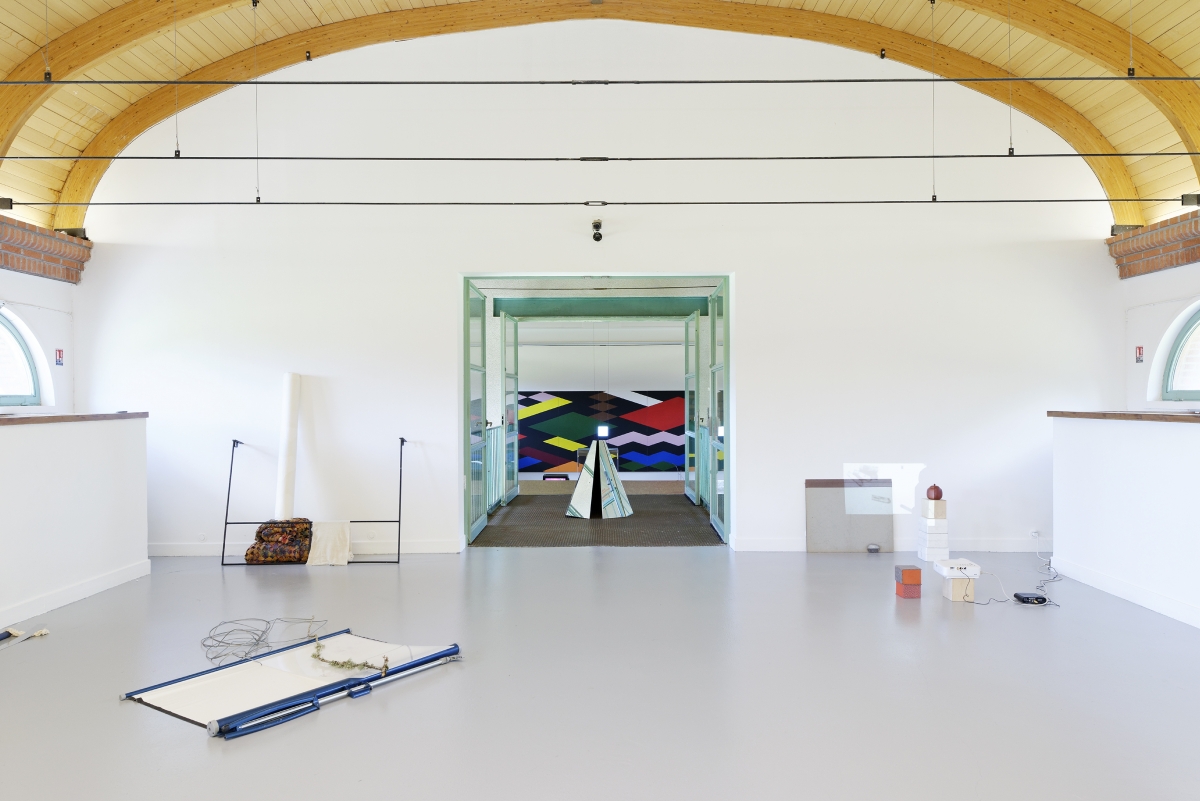 Push the door. And immediately, Lo spacio tra di noi, the space between us. Small islands form, stemming one from the other, stiff, angular, and geometric. The colours are soft, they seem light but they are rough, the meticulous organisation of the objects emitting an almost human warmth. There is a palpable desire to become microscopic, to go to live amid these forms, to live a pocket-sized life.