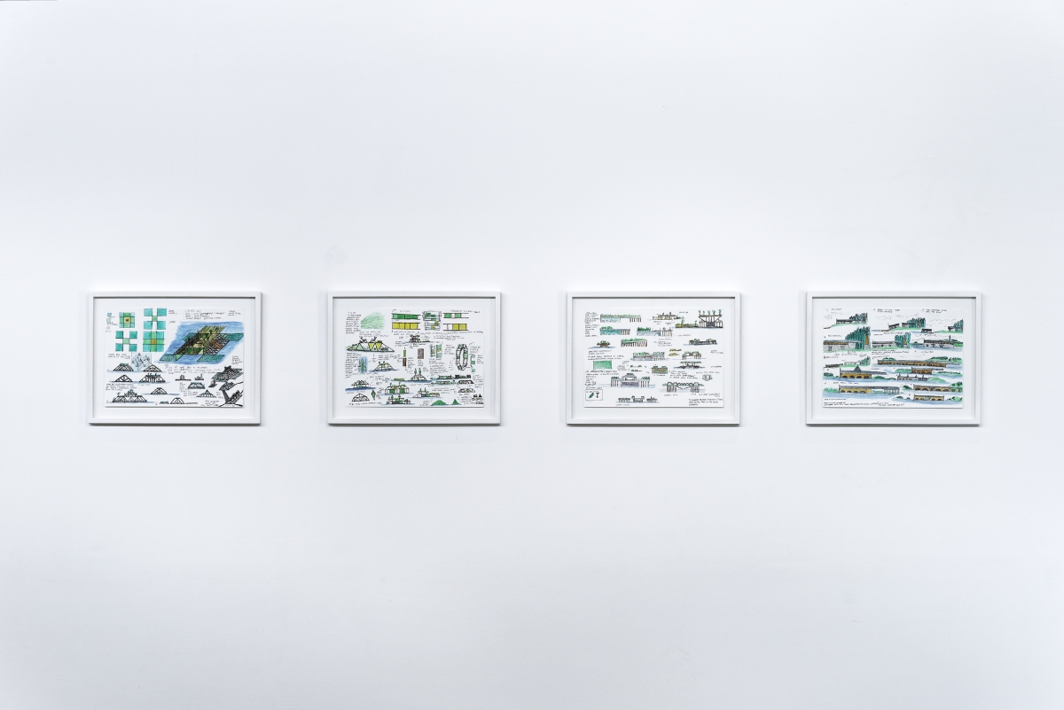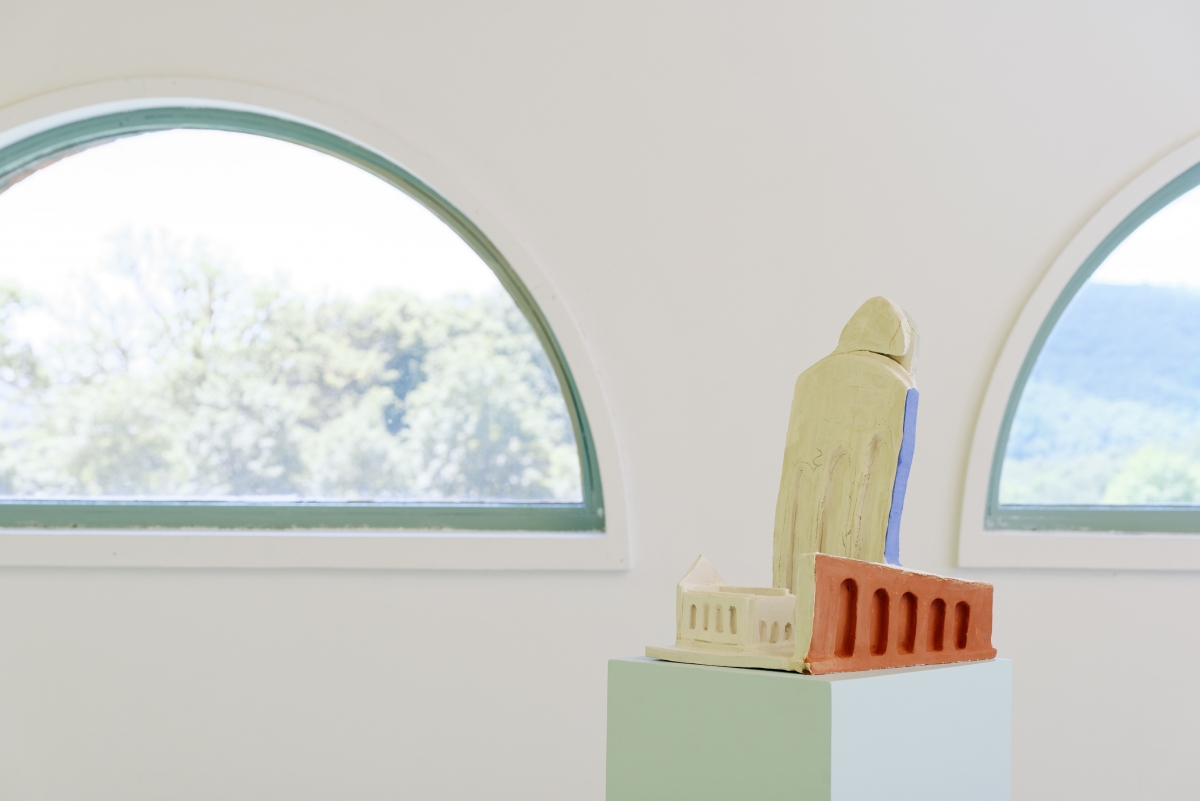 WOW. There is a certain pleasure in positioning oneself as an invisible voyeur in the middle of the exhibition, very high up, stuck to the wall, observing a number of scenes disseminated in the space: a square, arcades, groups forming to wait and share the ennui of a scorching afternoon together. Further on, only the gaze can give an existence to the gesture, the filmed movements are the only witnesses of a furtive construction.
