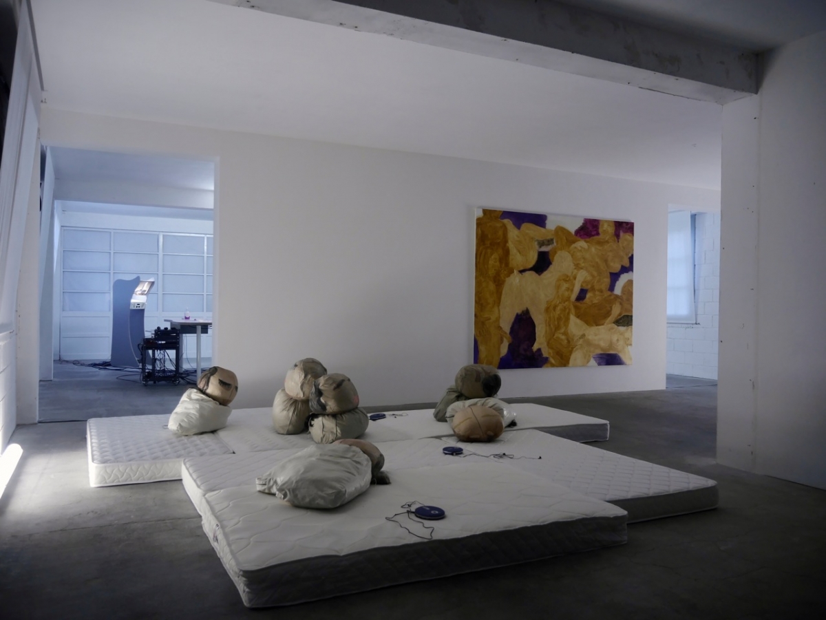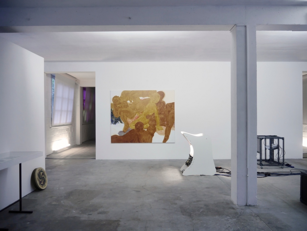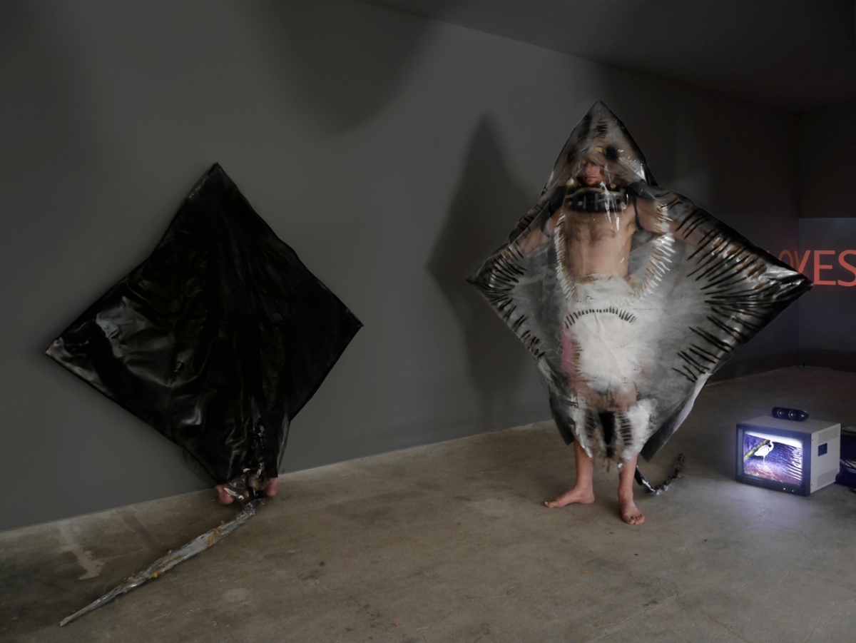 Kisses Sweeter Than Wine is a video, first and foremost. A video-document that captures a performance by Öyvind Fahlström, produced during the 9 Evenings: Theatre and Engineering of 1966 and that was to serve as an anchorage point for this group exhibition curated by Matt Packer. Between the threat of nuclear annihilation and cosmic humour, Fahlström was denouncing the complacent connections between technology and military power, countering the technicist utopia of the mid-sixties. The context has now obviously changed, but the concerns remain strikingly similar: the Promethean myth of a body-machine alliance is relevant today more than ever. Drawing together algorithms, amazing calculators, telluric bodies, and opaque ceremonies, the visitor is invited to navigate amidst an array of flesh and electrical wiring. Always partway between satire and communal elevation, this opera with its sometimes-grotesque aesthetic was to provide the plastic and conceptual repertoire of the exhibition. From Haraway’s Cyborg Manifesto to the data-cum left behind each visit to a pornographic website, the body-machine metamorphosis is both powerfully fantastical and contemporary. This is the disarming observation that Kisses Sweeter Than Wine seems to make.