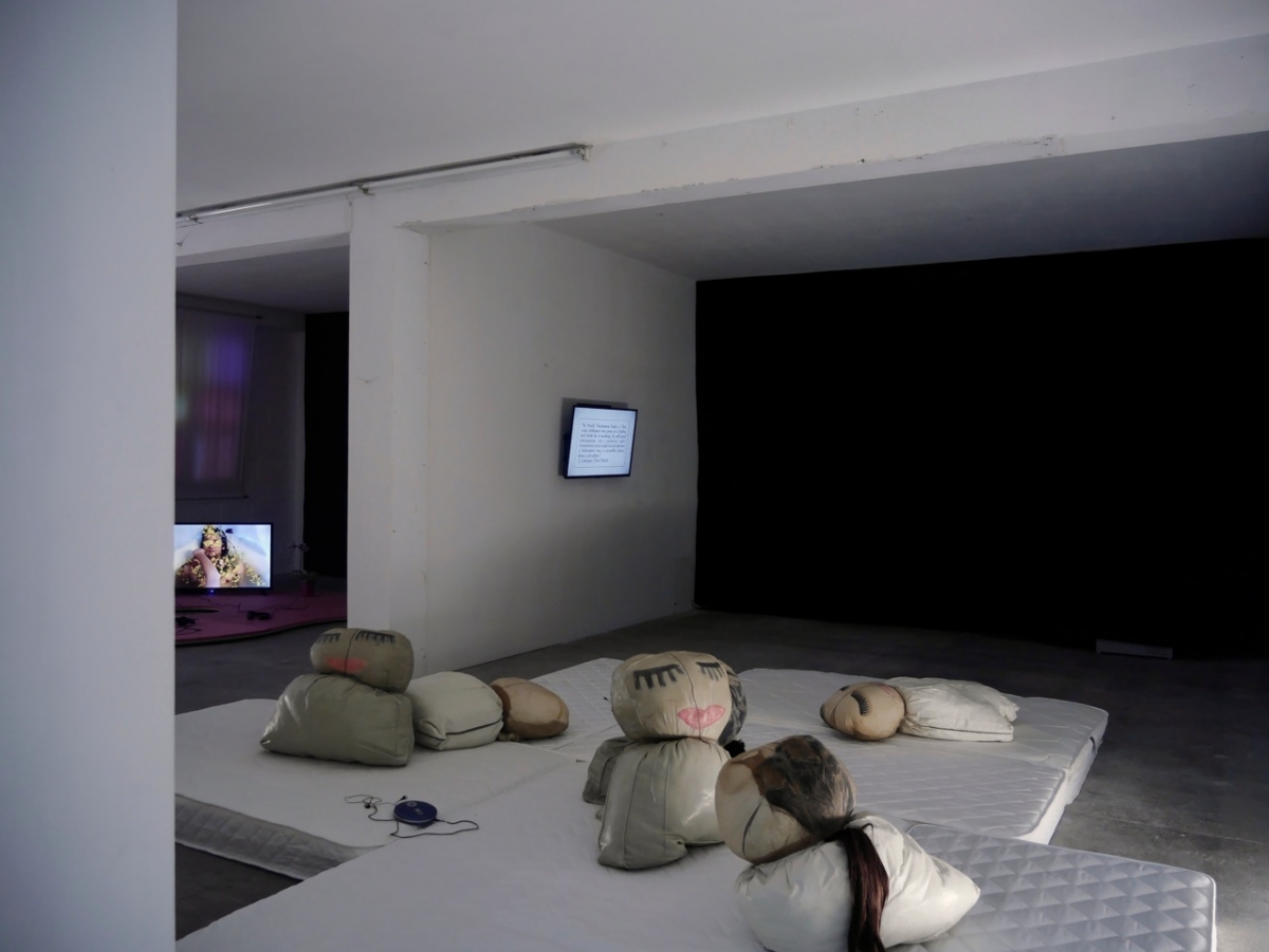 To the placidity of bodies responds the anthropomorphic video installation by Melanie Bonajo. Goddess, island-dwelling whore, orchid, she stages herself, offering her body on demand. A gift that here assumes the form of absolute hospitality: for the gaze of men primarily, then for their inclinations, and finally, for the earth. She assents to their procrastination candidly, without miserabilism, but with a fierce desire to have a powerful impact, to produce an action with her body. Mother nature: the pussy becomes a pressure point for emancipation. Annie Sprinkle is never far away, nor is Valie Export for that matter. As Bonajo exposes herself to the gaze, mutating into a hyper-sexualised Pythia, now queer, now butch, the politics of care pass via the inner thigh, via peer-to-peer, via patriarchy. Then the shadow of doubt is cast on Amazonian activism. The pivotal role fantasised by Bonajo between the realms of plants, humanity, and the divine is no longer so certain. The chain has been broken. It is perhaps when humanity is pushed into its furthest corporeal reaches, when it borders on a form of autism, that it is best paired with technology, in the manner of Jedediah Buxton, the unrivalled calculator played by Rauschenberg in the film Kisses Sweeter Than Wine. Where does the conversion take place? The incompressible conversion that transfigures human into machine? Between milk and wine as Barthes would say; through the ass Bonajo would reply. That might be what she wanted to say. That was how I understood it.
