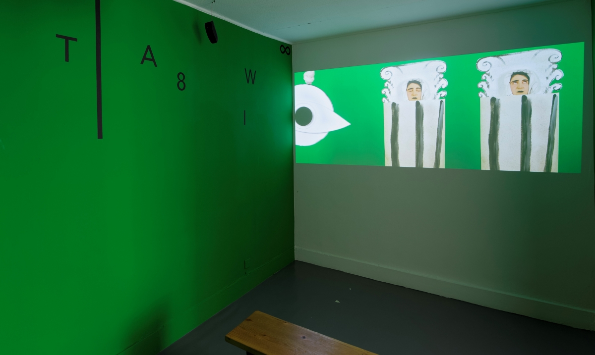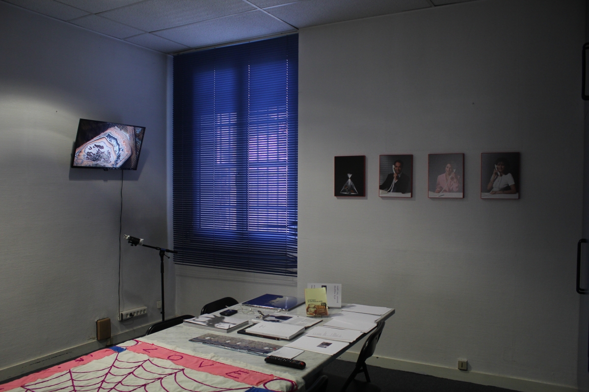 One of the main reasons to attend biennials is to find out about unusual places, and Carbone 18 did not disappoint in this respect. It was exciting to enter certain locations and to discover strange, unexpected spaces, often hidden behind dull windows. This framework created space for dialogue between the work on display and the architectural and decorative specificities of the places they were situated in, places that had often lost their original functions. This was the case in the exhibition False Layer curated by ZZ Studio (Lyon), where it was difficult to distinguish between the work and its environment, the former having adopted the same formal and chromatic codes as the latter. Playing on the monochrome, minimalist forms of the outdated design of a former orthopaedics institute, the selected works seemed to be integrated into the place and turned the visit into a sort of curious "hunt for the artwork". Among others, work by Simon Feydieu, Nadia Guerroui and Frédéric Houvert could be found even in the windows, where languid textile sculptures by Caroline Saves were hung. Just a stone's throw away, the Maison Octopus collective had created Speed Data, an exhibition based on the codes of speed dating in a small space that could have been the offices of an insurance company. Split into two parts, the first room hosted a brilliant conversation between works by Benjamin Collet, Lucille Uhlrich, Nicolas Momein, Remi dal Negro and Ceel Mogami de Haas, while the second featured a collection of reproductions, compounding the "postmodern office" atmosphere that was deftly illustrated by a series of framed pictures by Florent Meng.