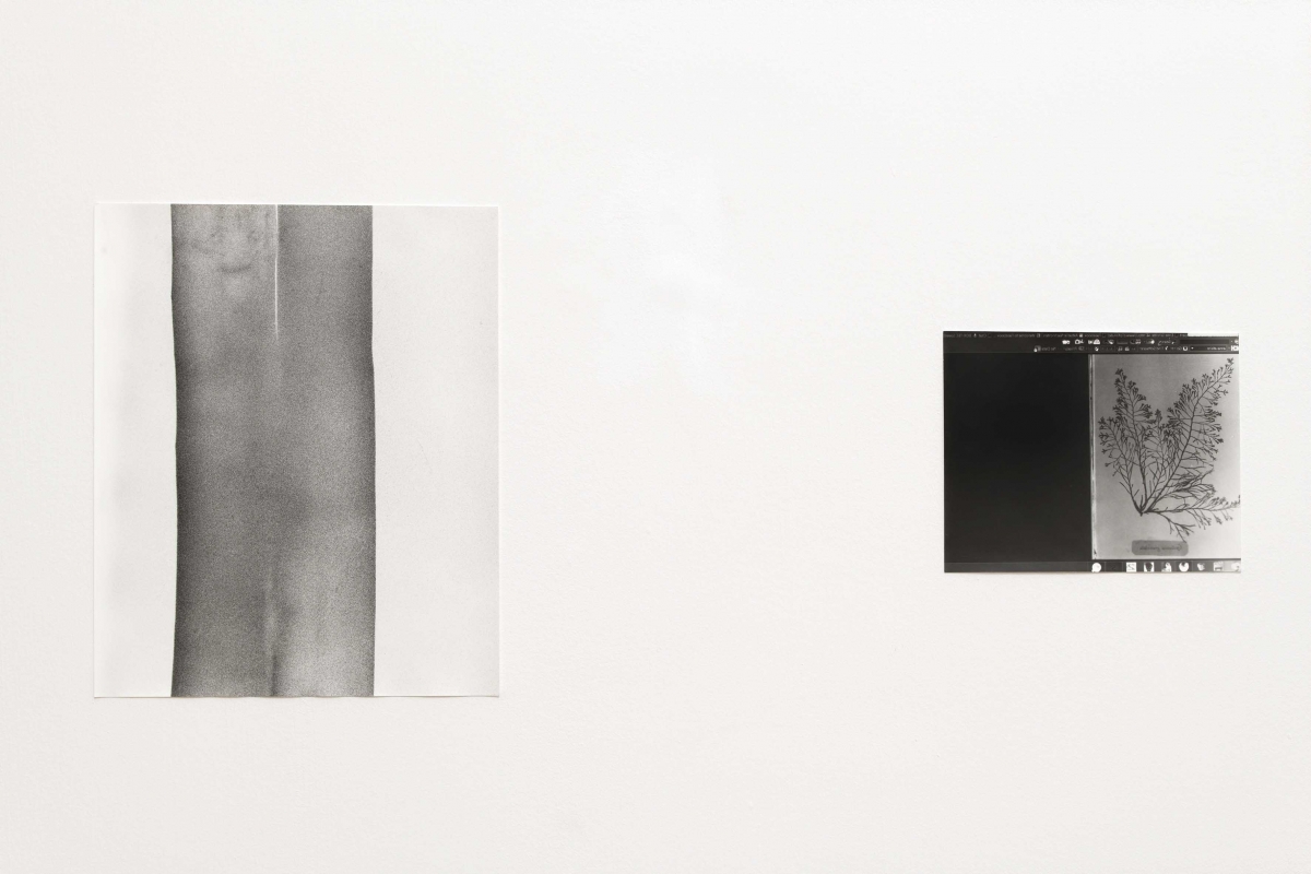 All of the rooms face the valley, functioning like so many chapters in a book, within which each wall resembles a white page. The blocks of text appear to be erased in favour or a narrative made of photographic comparisons. Fauna and flora, omnipresent behind the windows of the château, are the protagonists of thematic micro-histories deployed within each of the spaces. While photography still represents the material remains of its model, the Barthesian “that which was”1 deals emphatically with the living character of certain subjects here. These subjects are sometimes imprinted on the paper’s surface through the physical contact of their own bodies. Small insects, plankton, and plants are placed inside the artist’s camera obscura. These images exist independently of one another, yet from their encounters – among themselves and with the landscape – a new discourse emerges. This principle of free association, notably developed by Arthur Rimbaud in his correspondence, attests to the eminently literary character of the artist’s work.