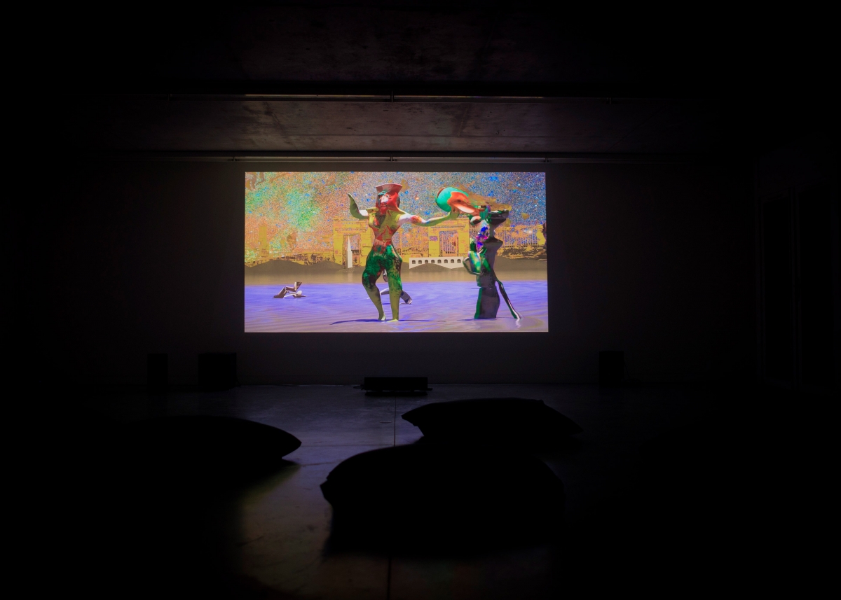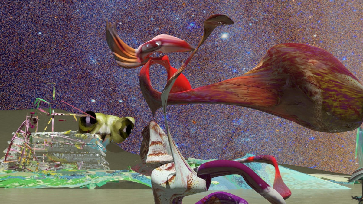 Striking and unexpected, a somersault makes us pass back over to the other side of the mirror: here we are again in a world of software, the observatory-style sky stuck to the backdrop of a landscape where hybrid-looking creatures scrape out their meagre existences. It is less pop than the Jésus Perez of Harmonie and more “historical”. Instead of Rimbaud, we find Dalí, Tanguy, and a concern to tear animation away from pleasant scripted fables, so as to draw it towards the pictorial, sculpture side, and hence experimental film. As though the diligent return to the camcorder had allowed Dezoteux to once again pose the question of the inclusive ties between narrative and images, to restore the priority to the latter, to “mental” images, in the organic character of their existence, as Simondon described it.2 Of course, Dezoteux reminds us that in Corso or Animal glisse, it was the constraints of 3D object animation that conditioned the development of the narrative sequences (often loops). Here, the approach is more surrealist: the sudden appearance of images and their interaction seem to obey internal laws, precisely like those of “organs”, or to obey the non-law of free association and from there the story either emerges or it doesn’t. Often, it doesn’t emerge – or, better yet – as with all artistic film, it is on the verge of emerging and always beneath the image that invites it in. This is possibly what the “poets’ prison” actually is.3