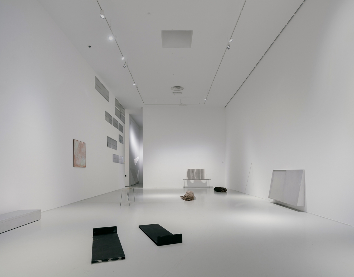 The exhibition at the Musée d’art Moderne et Contemporain à Saint-Etienne dedicates five rooms to Djordjaze in the form of an L, with the junction between the short part and the long part of the L slightly snaking with low-lighting and low ceilings. The more elegant part of the exhibition was in the final two rooms, where the sophisticated, modern architecture of Didier Guichard’s building can be felt more fully conversing with the works. Djordjadze herself designed the combinations of the works of her twenty-plus year career in-situ, creating a never-before-seen installation and referencing process-based artists and exhibitions before her. Perhaps an urgency comes from the never-before-seen’ness of the exhibition? Yet, it lacked intensity, and a grand gesture only arrived in the final moment– which could have perhaps even felt insincere to some.