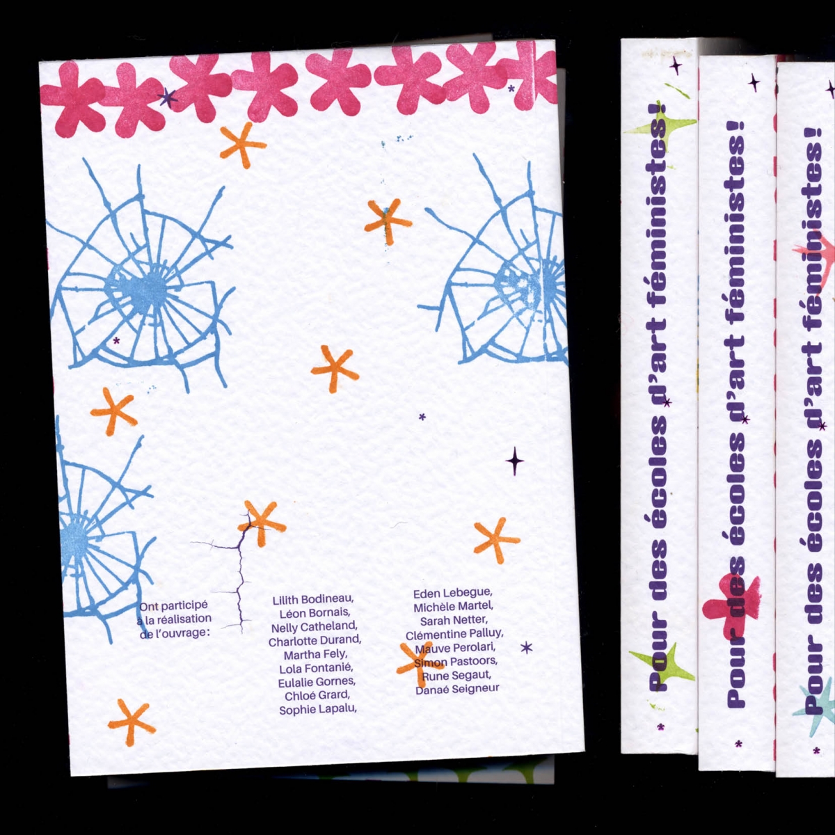 I would be lying, however, if I said that contemporary art produced nothing but competition and cultural domination. Even though the belief in a genius that can produce without pre-determined rules has often justified a harmful competition, Pour des écoles d’art féministes ! shows how art school teaching has also allowed for “a freedom in terms of formats and […] quality pedagogical relationships1 [for those who want them].” And since art always comes from an engagement, even though this engagement “can be a conservative one, a reactionary one, a limiting one rather than one inspired by a more revolutionary imaginary,”2 the interventions brought together in this reader attest to just how many of us today consider that representations must be criticized from an ethical and political standpoint, and pursued to the extent that their circulation contributes to a subversion of the normative social order than to innovation in the field of art.