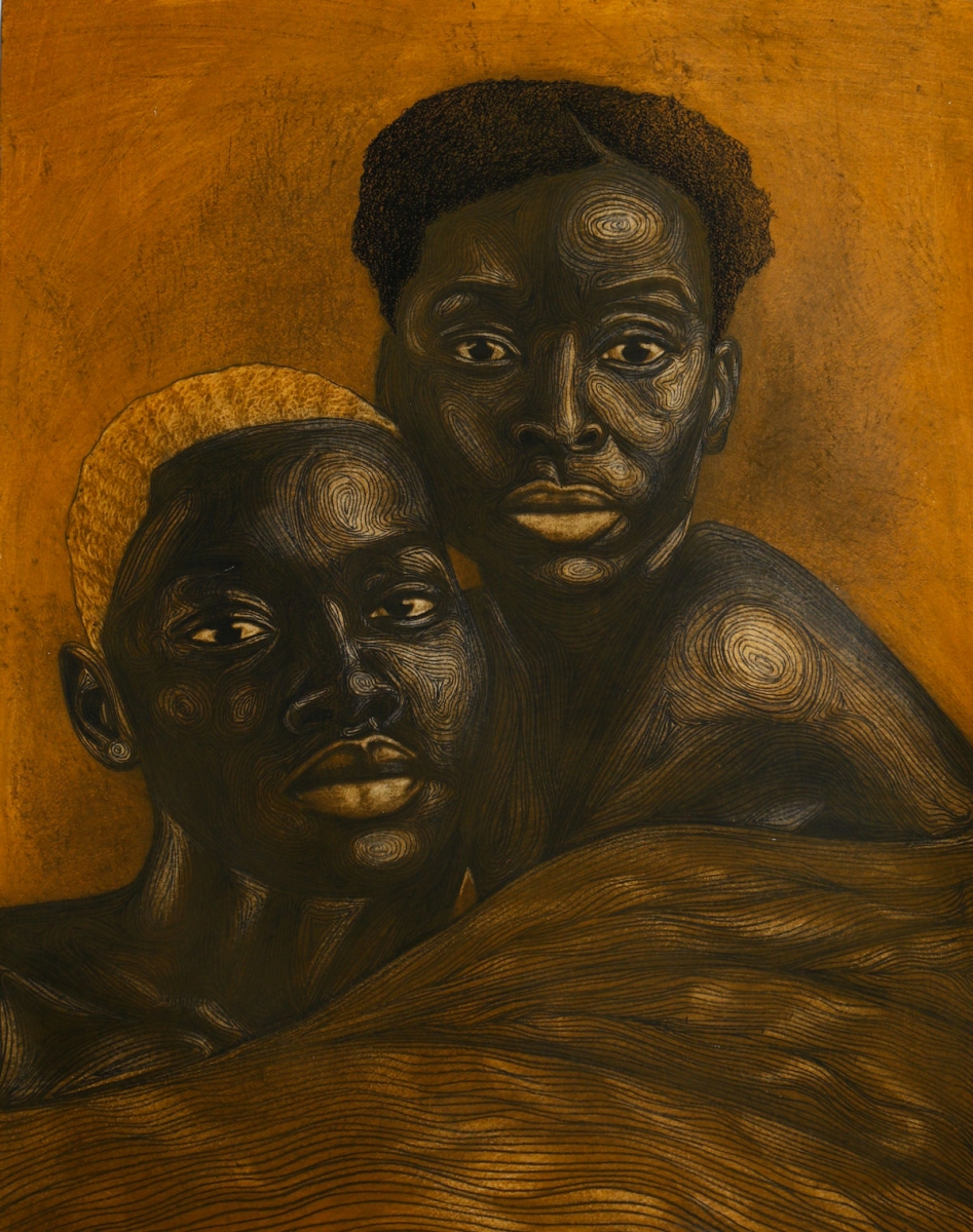 ‘Nothing external influenced me to want to paint, it was very organic. Things I see every day and the experience I can express through my art is enough reason for me to keep doing portraiture,’ says Chiderah Bosah in a phone interview, a 20-year-old self-taught painter, who has advanced from drawing realistic work to painting with oil. Bosah paints deceptively simple portraits with monochromatic backgrounds. One figure is typically in the frame, with an expression that is either muted or animated, and the body painted in a chromatic black-gold. His portraits are a mirror, filled with every (wo)man, reflecting the society that inspired them.