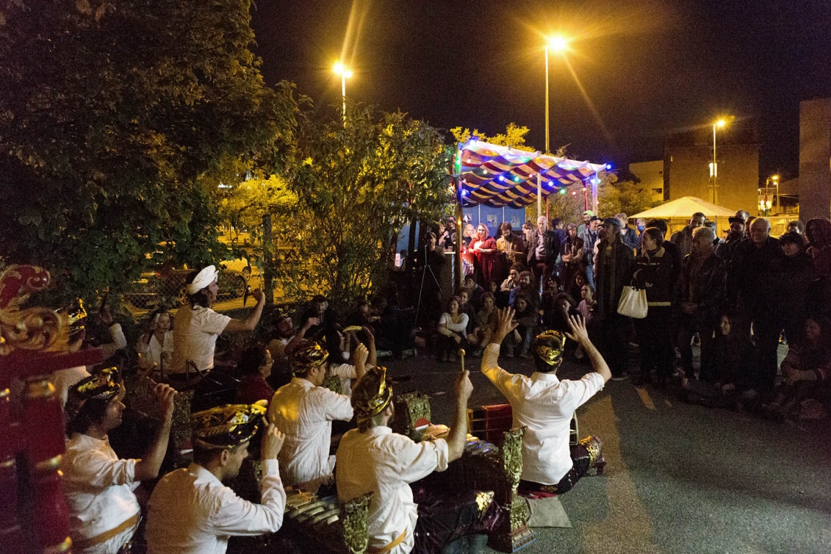 NBSP: There have been many! The opening already set something in motion. We invited Élisa Pône to accentuate the space with a pyrotechnical intervention. It was a super slow, almost deceptive combustion that became a kind of epiphanic thing, firing on all four cylinders. It was anything but a fireworks display and that established a rather unusual tempo. Then the Orchestre d’Auvergne played symphonic overtures and that was quite different. For the second full moon, we invited Volmir Cordeiro. It was incredibly powerful: he worked with the percussionist Washington Tìmbo, doors wide open and music blasting. That also surprised us. We saw a dancer activate the space, to the extent that we thought to ourselves at one point: here’s a body that’s revealing the space. The Balinese gamelan from the Indonesian embassy (Puspawarna) was wonderful, the instrument had a kind of sculptural aura. It also had to do with the landscape; all of a sudden the moon entered the field while they were playing. There was also Dector and Dupuy. They worked on a guided tour around La Tôlerie and met people from the neighbourhood. For their research, they’d asked for help from a heritage guide, but the Bien Assis neighbourhood does not belong to the established tour, it is a neighbourhood that is between two zones and not very touristic. The guide from the tourism office accepted to improvise a tour. On the day, the guide followed the artists’ tour. The roles were reversed!