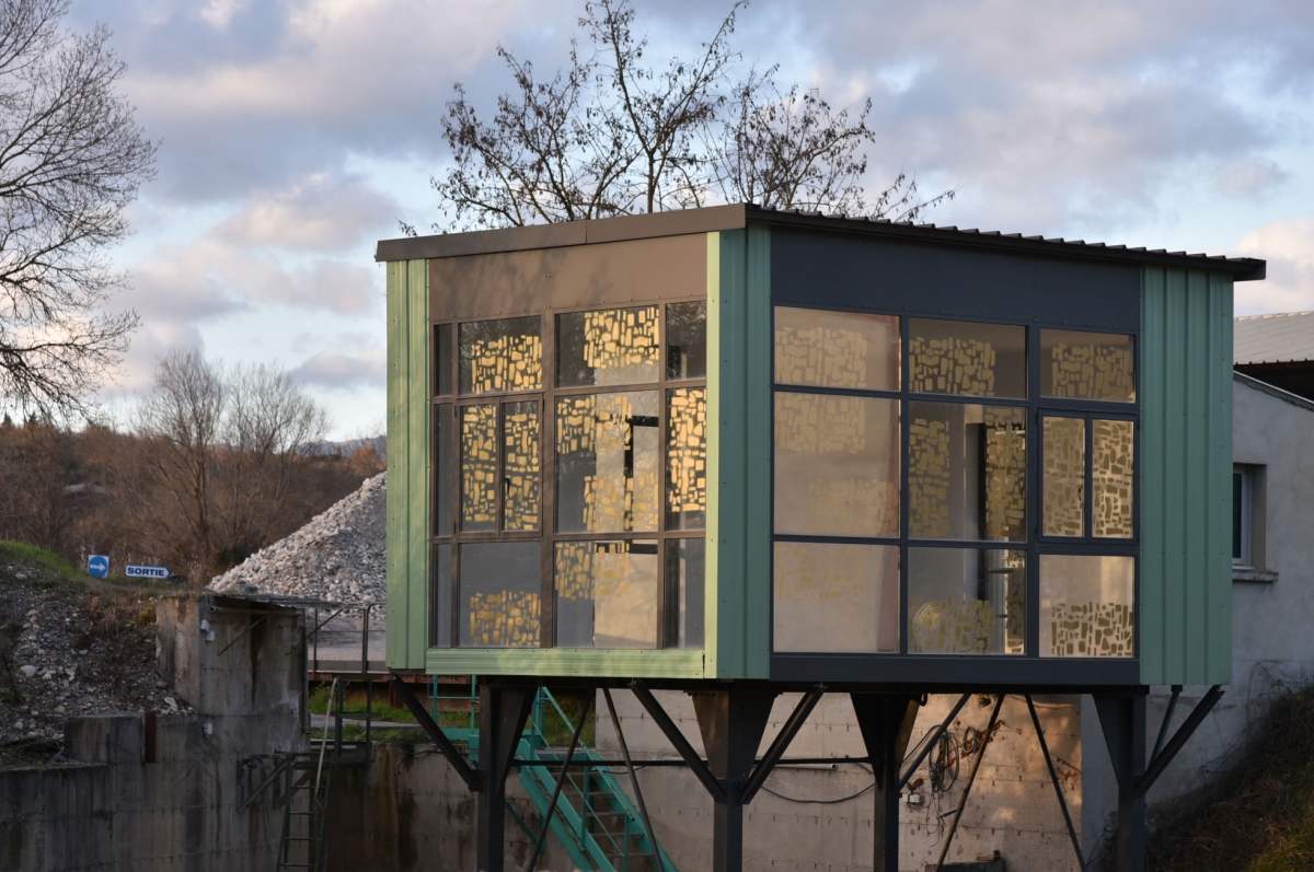 If you still doubt the space’s existence, you can nevertheless probe its contours through the photographs found online: two white walls and two glass walls form a green sheet-metal cube perched on piles in the middle of a natural landscape containing few industrial remains. La Centrale is therefore situated somewhere, that is, in Ardèche (but we won’t tell you exactly where, that’d be too easy), on the premises of a functioning sand quarry, and more specifically, in a former concrete mixing plant whose extraction activity ceased in 2007. This infrastructure, once cleaned, redesigned, and restored, changed its function and gave its name to the artist-run space.