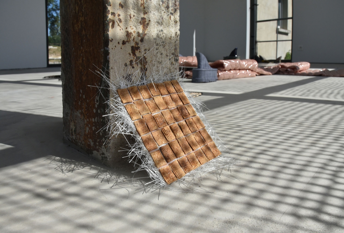 Once the installation is over, no opening fanfares follow. Visits are possible, either because people already know the address, because they’ve asked on social networks, or because they are headed that way to buy building materials, but never by coming across it on a stroll. To enter, you must ask. Far from being a gimmick, the surprising context and this constraint of opening up instead invites discussion. Since the sand quarry is still active, there are trucks and customers going by, and La Centrale makes a wonderful incursion into this reality, with which it creates frictions, encounters, and formal comparisons that people are quick to mention.