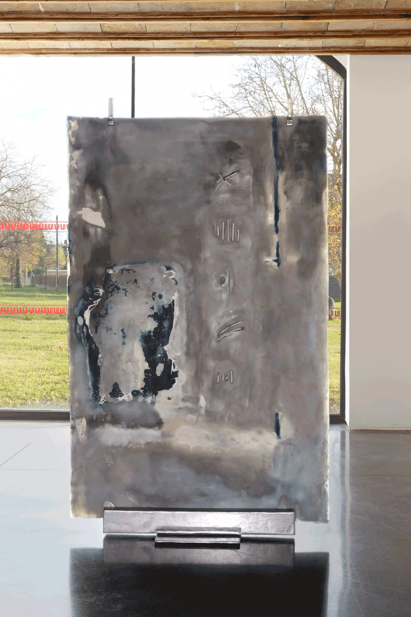 Beyond a potential signature, graffiti attests to communication, as a geographic or temporal indication designed for a reader or a minimal piece of information destined to enter the fabric of time. At the Musée de la Céramique de Lezoux, the signs and symbols left by the Roman potters create an echo with the work of Margot Pietri and give rise to an examination of present-day and future archaeology and the traces handed down to societies. A cross, a line, or a geometric figure has no meaning outside of a plan, outside of a common frame of reference. They may, in the hobo code, warn the vagabond of eventual dangers, but for other communities their meanings are radically different. The clues that the artist leaves will only be illuminated once we consider them within a milieu, only once the artworks are established as a network. Mass-produced, yet handmade, the objects in terracotta conserved in the galleries respond to the same forms but contain imperfections and singularities. Margot Pietri’s wooden, resin, and steel sculptures also rework generic forms, but without the use of moulds, retaining the trace of each gesture. These details reveal systems of production to us, which refer to standards, but without having the means or the desire to apply them.