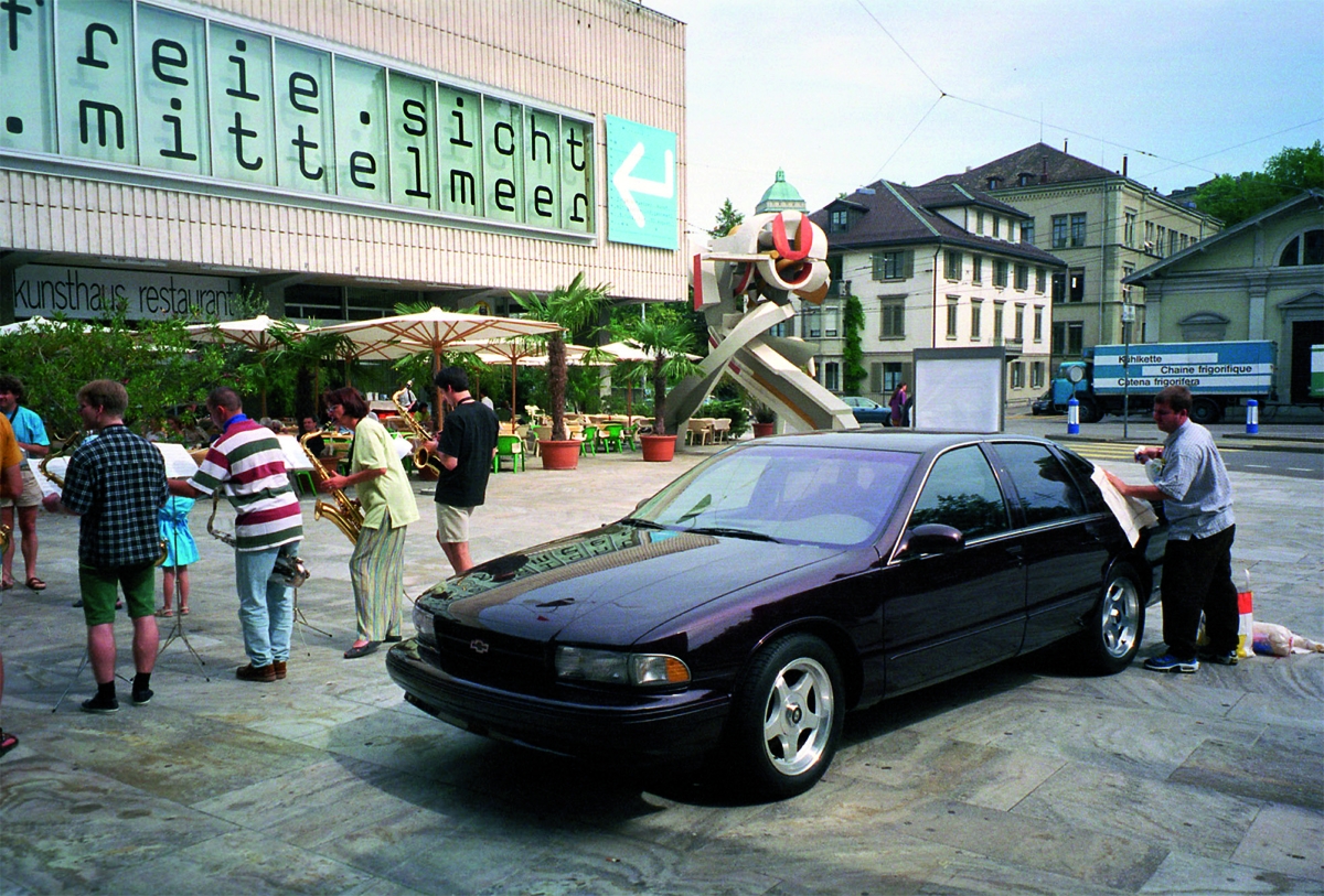 However, Rhoades’ project is perhaps less superficial than it appears: as the artist explained, who parked his Impala in front of the Kunsthalle in Zurich, European museums were antiquated institutions in his opinion – contemporary artists could no longer invest their spaces.2 Despite these specious declarations (to put it mildly), Rhoades was reviving, with an undisputably fresh approach, certain ambitions of the historic institutional critique contemporary with Roth’s experimentation. In 1998, the situation was very different from that of the 1970s, even in “old” Europe. Other models for the museum needed to be reinvented, to battle the traditional museum head on. The Impala, a museum on wheels, modern and virile, thus emerged as a new and highly individualistic concept, refusing the idea of a wider public but instead favouring a tête-à-tête with the artist. Dieter Roth, who was hardly displeased at the idea of stinking out his collectors one by one, would doubtless not have turned his nose up at this postmodern and American citation of his “very serious and sentimental and romantic” cheese art.3
