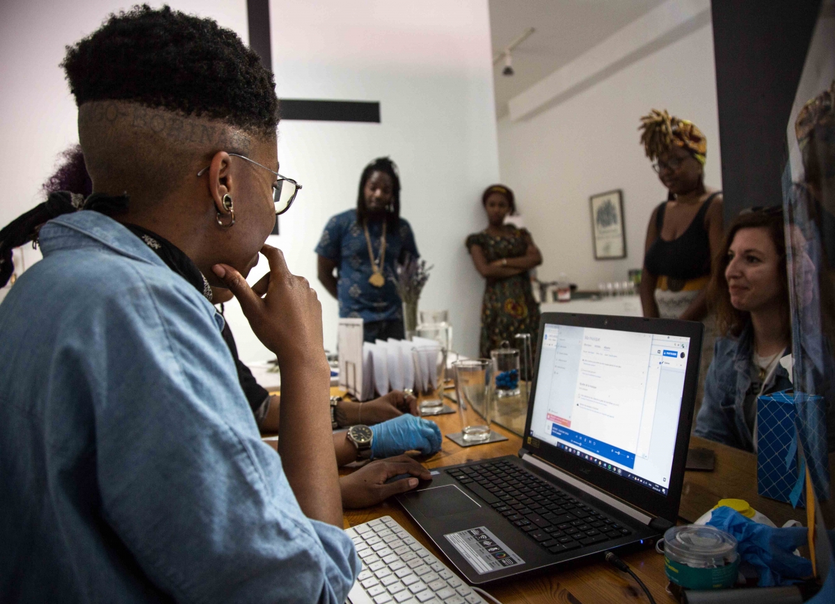 PBKL: The public who came were above all those out and about on the Boulevard Saint-Laurent which was pedestrianised for the Murals festival. We had put a sign outside: “Black Médecine: Do you experience systematic discomfort as soon as oppression crops up in conversation? Come and get your diagnosis” with a photo of Claire and I as doctors. Many people came out of curiosity. I wasn’t expecting it. With an activist action, I would never have had so much feedback and such large audiences. However, the members of La Centrale didn’t join in. We didn’t affect the art centre’s audiences, most people were passers-by and also black people who had heard about it through word-of-mouth on social networks. They brought along their colleagues, partners, and friends, because in the context of a performance, white people were more attentive and it took a weight of them because we were doing this work for them. A real public service.