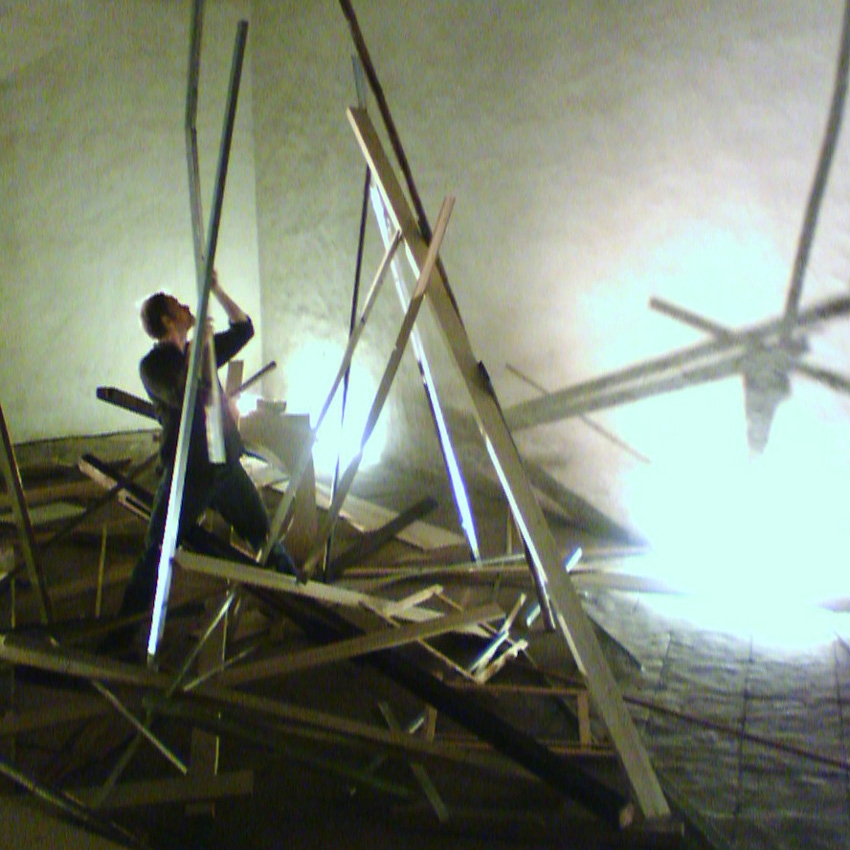 Paris Bercy n’est donc pas qu’un terminus pour marchandises. A quelques kilomètres de cette idée reçue, j’arrive dans l’humidité du Parc Saint Léger. L’île de Xavier Veilhan flotte toujours dans le cresson. 2010.11.18 17h08. Des prismes de bois m’indiquent la présence de Benoît Billotte. L’autre résident affine l’installation de la Maison CéFêT : François-Thibaut Pencenat et sa complice ouvriront bientôt ici leur maison jaune. Dans le centre d’art, des ronronnements mécaniques rompent le silence de Pougues-les-Eaux. Keren Brätsch projette dans des recoins des dizaines d’images militantes alors que de grandes peintures trônent dans le volume principal. 2010.11.18 20h56. Le soir même, dans la Chapelle Sainte Marie à Nevers, Claude Cattelain répète des tentatives d’érection. Atteignant pourtant d’impressionnants sommets, ses efforts sont voués à l’effondrement, magistral. Dans une esthétique similaire de bâtisseurs, Marcel Hiller et ses potes reconfigurent la façade et le contenu de la Galerie Arko. Après une nuit dans les brumes pouguoises, un train me reconduit au cœur de la préfecture de la Nièvre pour une escale par sa cathédrale, probablement l’édifice religieux flanqué de la plus grande hétérogénéité de vitraux contemporains. C’est à Bourges que la journée continue avec sa 5e Biennale d’Art Contemporain déployée dans la cité en treize stations. 2010.11.19 11h03. J’embarque dans un convoi pour la Friche Culturelle afin de ressentir les vidéos du Haïdouc, les effluves du Transpalette, puis les températures de Stephen Dean dans une superbe construction cylindrique où l’on tourne jusqu’au vertige. L’École des Beaux-Arts recueille un film de Salma Chaddadi. Trois artistes en résidence nous ouvrent leur atelier. Et Stéphanie Nava dissémine des pièces récentes à La Box. Ses grandes surfaces graphitées restent ici ce qui me séduit le plus. Françoise Vanneraud présente au Musée Estève des feuillets éphémérides : il faudrait venir ici chaque jour pour en voir la totalité. Dépassons maintenant les remparts pour atteindre le Pavillon d’Auron que l’on pénètre par une rampe dont nous découvrirons ultérieurement les fantaisies. Une large halle permet là de réunir très confortablement trente artistes qui forment Panorama. Beaucoup d’heureuses retrouvailles et quelques découvertes rythmèrent ma visite. Un troublant sentiment se cristallise cependant, voisinant celui qui se dessine généralement dans ce type de manifestation consacrée à la jeune création : perturbante est la proximité formelle que beaucoup de nouveaux partagent avec leurs ainés, même de quelques années. Intelligence ? Déférence ? Ignorance ? 2010.11.19 14h56. S’il ne me faut retenir qu’un trentième de la manifestation, j’évoquerai la proposition de Guillaume Linard Osorio frisant à la fois ce constat tout en excitant ma propre sensibilité. Ailleurs, le Palais Jacques-Cœur est une réelle punition à visiter par sa cinquantaine de portes étroites qui fragmentent l’itinéraire de Sabine Massenet en un satané labyrinthe. Eui-Suk Cho assemble des briques textiles près de la grandiose cathédrale. Et sur la pente qui reconduit au Pavillon, je croise une jeune femme en fauteuil roulant qui négocie dangereusement la topographie accidentée du trottoir. Malgré ma complicité, la descente est sportive, et la fascination de Raphaël Zarka pour la glisse urbaine prend un sens nouveau. Plus bas, le Muséum d’Histoire Naturelle accueille Laurent Duthion dont l’œuvre est désactivée. J’interroge un agent pour m’assurer qu’il s’agissait bien d’un film, et on me répond avec assurance que non, ce n’était qu’une petite projection. Ce joli commentaire me satisfait. A la Médiathèque, une autre petite projection, de Jérôme Fino, donne à voir un piano se faisant tendrement martyriser les cordes. Et dehors, sur le parking, je retrouve la fille en VHP, victime cette fois d’un obstacle. L’œuvre du collectif Raum était trop loin pour amortir son choc, et son visage ensanglanté témoigne de l’agressivité latente de notre environnement. 2010.11.19 17h22. Les manifestants de Mircea Cantor et leurs pancartes inquisitrices nous avaient pourtant mis en garde.