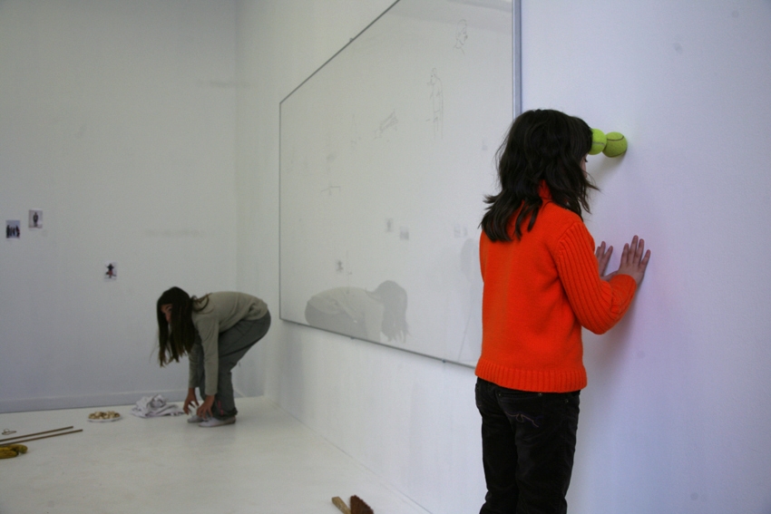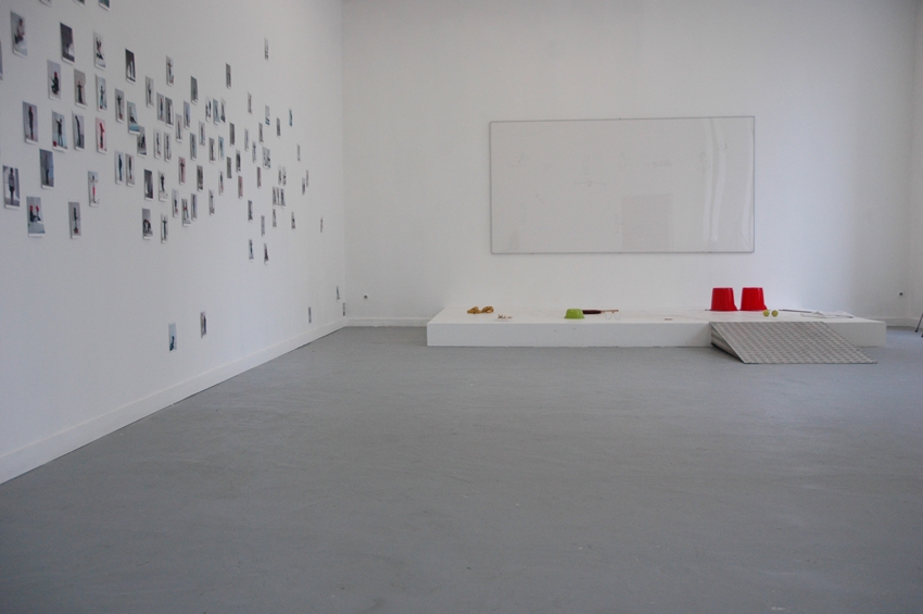 Il fut un temps où la sculpture correspondait à des pratiques académiques très codifiées. Alors qu’on hésitait encore à qualifier de «sculptures» les objets monolithiques du Minimal art, la «sculpture», avec l’explosion des pratiques qui a accompagné les années 1970, a alors pu désigner, dans le mouvement d’une d’émancipation ambiante, à peu près n’importe quoi, et s’hybrider sans complexes avec des attitudes (devenues formes, pour rappeler le titre d’une exposition phare d’Harald Szeemann) telle que la performance : qu’on pense par exemple aux Living et Singing Sculptures (1970) de Gilbert et Georges en Angleterre. Des One Minute Sculptures on a retenu quelques images aujourd’hui familières. De ce fait même, ce que la commissaire de l’exposition Mathilde Hiesse insiste pour nommer une réactivation pouvait sembler relever de la gageure. En réalité, une telle démarche va tout à fait dans le sens d’un artiste facétieux cultivant une forme d’humour slapstick, l’œuvre devenant ainsi une sorte de running gag. Et ici la nature processuelle de la série a été respectée : à partir de dessins dont certains datent de 2008, des membres d’associations locales ont été mis à contribution pour activer les procédures proposées par Wurm, et accrocher eux-mêmes les tirages photographiques au mur. Se mettre une bassine sur la tête, jouer avec des élastiques avec ses doigts, coincer des bananes entre ses jambes et ses bras : autant d’actions humoristiques, qui ne sont pas sans rappeler les Actions-peu de Boris Achour (1993-1997), immortalisées par des images qui revêtent le caractère anodin de la photo-souvenir. Tout ici indique le refus du sérieux, la désacralisation de l’art, jusqu’à la facture simpliste des dessins qui illustrent les actions à accomplir. Les One Minute Sculptures semblent faire un pied de nez à la fois aux formes les plus violentes et les plus spectaculaires de l’art corporel, au hiératisme photographique des épigones de l’école de Düsseldorf, aux très sérieux protocoles de l’art conceptuel le plus aride et, plus généralement, à une société soumettant l’individu à une obligation de résultat — prendre une minute de son temps pour accomplir un geste aussi improductif que poétique… La «quotidienneté-aidée» que nous donne à voir Erwin Wurm, à l’image du «ready-made aidé» de Duchamp, semble nous poser cette question : l’art est-il vraiment important ? Cela me rappelle cette phrase d’un ami artiste : «les artistes ça n’existe pas, je le sais parce que j’en suis un»…