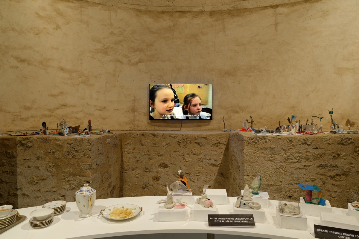 Par un jeu de mise en abyme sur l’espace de l’habitat, celui filmé et celui de l’espace d’exposition, l’artiste réussit à animer les objets et leur pouvoir d’évocation. L’accumulation d’objets anecdotiques - animaux empaillés, service à thé, récipients de toutes sortes… - rappelle les intérieurs du XIXe siècle. Ces éléments forment alors une famille, celle de l’artiste, évoquent ceux qui ne sont pas là (les grands-parents) et reprennent vie lorsque nos yeux se posent sur eux ou lorsque des lèvres racontent leur parcours. Par l’excentricité de l’histoire que l’artiste nous offre, elle contribue à donner une aura étonnante à des objets simples rappelant combien la capacité d’émerveillement dépend de celle du conteur.