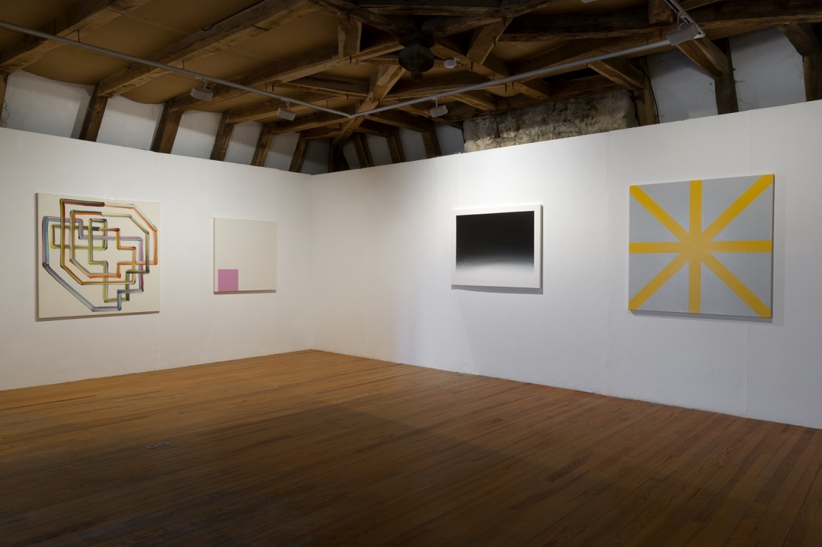 Maintenant l’exposition. Pas de zombies ici mais un ensemble de tableaux dont la répartition sur l’ensemble des cinq niveaux de la belle Abbaye Saint André répond à autant de subdivisions thématiques, chaque étage s’adossant à un mouvement pictural précis ou du moins à un moment de l’histoire de l’abstraction au XXème siècle5. Par un principe de gradation temporelle à mesure que l’on s’élève dans le bâtiment, il en procède ainsi : constructivisme et géométrie ; abstraction lyrique, expressionnisme abstrait (pendant gestuel) et art informel, expressionnisme abstrait (versant Color Field) et minimalisme, postmodernité, le dernier étage opérant une forme de synthèse de l’exposition. Le parti-pris des commissaires participe évidemment d’un souci de pédagogie et de clarté qu’il convient de saluer, celui-ci s’avérant de plus judicieux par endroits. Néanmoins, de ce procédé découle naturellement un choix d’œuvres (à quelques exceptions près) n’offrant qu’un panorama très restreint de la peinture telle qu’elle se pratique aujourd’hui en omettant celle qui, précisément, ne rentre encore pas dans les cases traditionnelles. On peut également y observer une forme de prudence, celle-ci consistant à replier chaque production sur un modèle pré-existant : en somme, préférer s’appuyer sur des catégories établies et, d’une certaine manière rassurantes, plutôt que d’en inventer de nouvelles. Cette indexation produit en retour le risque, hélas fréquent, de l’illustration et une approche immanquablement réductrice de certaines pratiques en annihilant leurs spécificités propres. Il en va ainsi de l’abstraction trouvée de Francis Baudevin, des tableaux réflexifs et cosmiques de David Malek ou de la pratique programmatique et processuelle de Bernard Frize, chacune de ses œuvres se voyant comme vidée de sa substance théorique. Ainsi, en choisissant de n’exposer principalement que des peintures immédiates et laconiques6 ou en choisissant de ne pas faire parler les plus bavardes, l’exposition accomplit malencontreusement le programme annoncé par son titre en faisant sienne les conceptions quelques peu étriquées des membres de l’art non figuratif. Il n’en reste pas moins que soumettre une hypothèse au spectateur demeure l’une des belles conceptions du métier de commissaire d’expositions. Peu importe en réalité que l’on soit d’accord ou non.