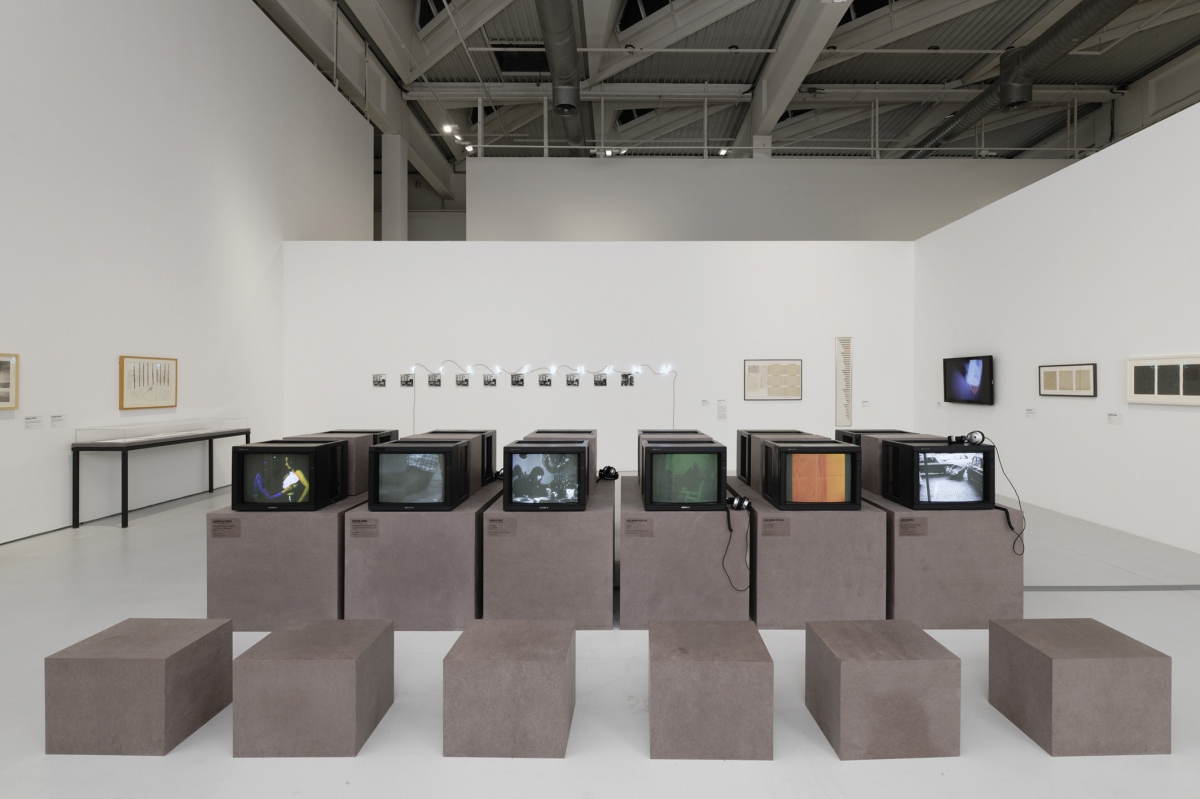 Globalement, les œuvres sont ici bien choisies et bien montrées. Quand c’est possible, tout du moins : deux pièces de Jannis Kounellis – des photographies qui documentent une installation ayant fait appel à des chevaux vivants (Dodici cavalli vivi, 1969) et un tableau qui doit être activé par un musicien et une danseuse (Da inventare sul posto, 1972) – révèlent un contexte, mais ne peuvent pas ici être véritablement appréhendées comme des expériences. C’est le parti-pris de l’exposition, qui fait le choix, dans sa première moitié, d’aller au plus près de l’instant historique et de son caractère nécessairement éclaté, confus et, bien souvent, étonnant. Les documents, soigneusement sélectionnés et présentés dans des caissons en verre, ont donc la part belle. On reste plus dubitatif en revanche face à la deuxième partie du parcours, composée de deux sections intitulées « Actions » et « Entrer dans l’œuvre ». Ici, tout l’appareillage documentaire disparaît pour laisser la place à des œuvres que le public peut activer : cubes en toiles de Luciano Fabro, sous lesquels on peut se glisser, microphones qui pendouillent de Gilberto Zorio, avec lesquels on peut chanter en chœur, etc. Là où la première moitié de l’exposition nous révélait l’univers complexe de l’art italien des années soixante et soixante-dix – un milieu en pleine ébullition, friand d’expérimentations en tout genre – la seconde revient paradoxalement à une scénographie trop classique et peut-être un peu froide. Quelques œuvres d’artistes « étrangers » (non italiens) forment également une annexe qui est mal reliée à l’ensemble, et donc dispensable.