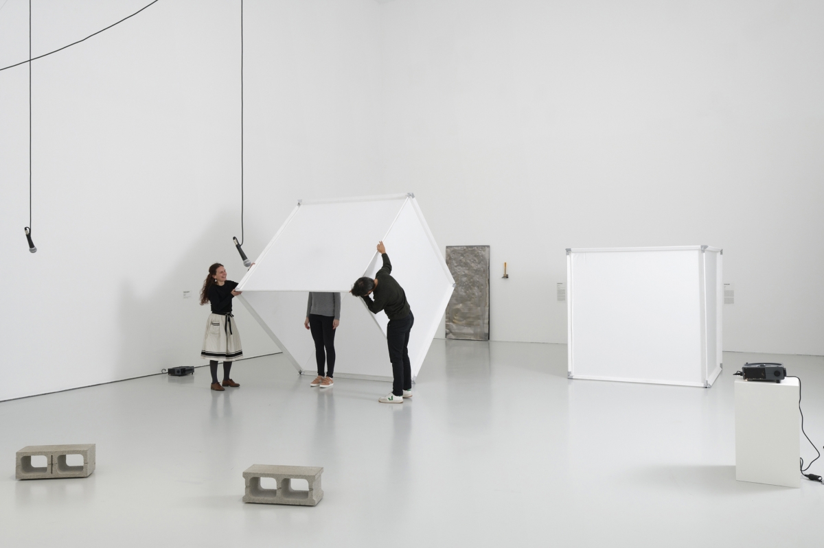 « Entrer dans l’œuvre » : c’est ce que nous propose l’exposition du Musée d’Art Moderne et Contemporain de Saint-Étienne consacrée à l’Arte Povera. Un titre qui souligne la volonté de mettre en avant certains aspects méconnus du mouvement : la théâtralité, le processus collectif, l’interactivité. À cet égard, le travail du commissaire Alexandre Quoi se fait l’écho de l’exposition liminaire « Arte Povera + Azioni Povere » (« Art Pauvre + Actions Pauvres »), organisée en 1968 par le critique d’art Germano Celant, premier théoricien du mouvement. Un retour aux sources qui se révèle en fait une proposition assez originale, tant le travail des têtes d’affiches associées à l’Arte Povera (Jannis Kounellis, Giuseppe Penone, Mario Merz, entre autres) renvoie, dans l’esprit du public, à une esthétique de la matière brute, inanimée, plutôt qu’à des œuvres incarnées et en mouvement. Or, ici, c’est bien l’aspect performatif et collaboratif qui est mis à l’honneur.
