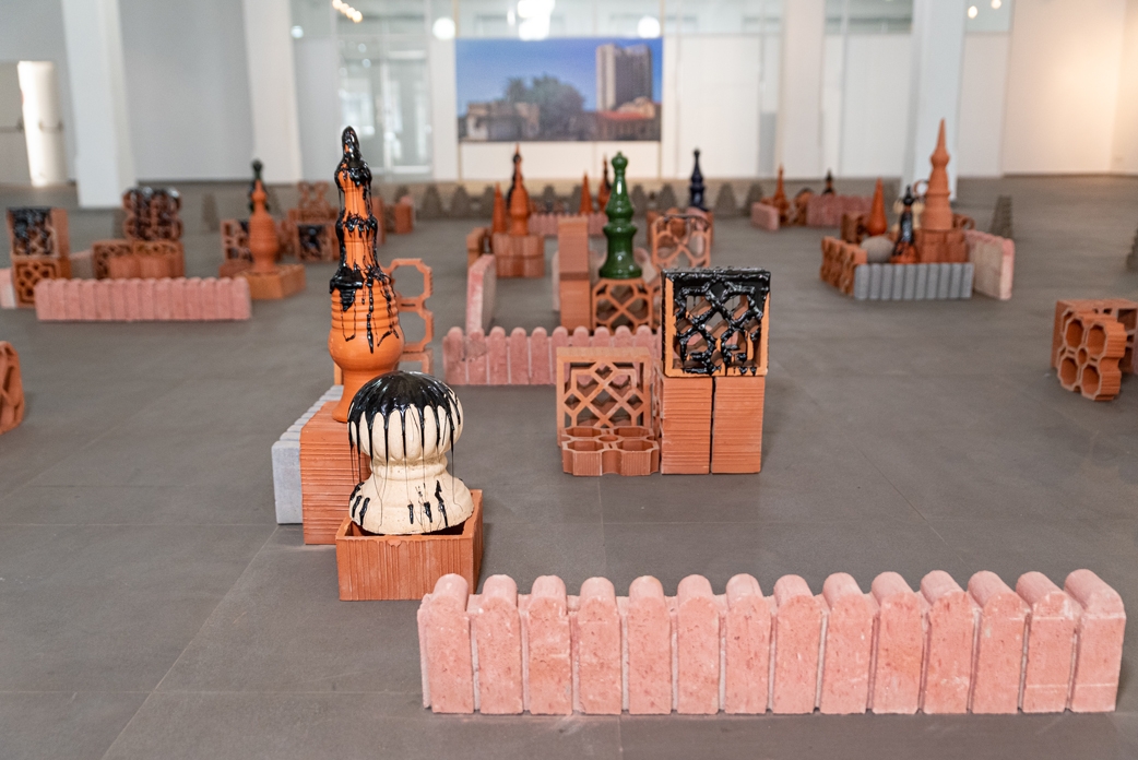 J’ai donc hésité, proposé d’autres auteur·rice·s, puis ai suggéré d’écrire avec l’artiste Sadek Rahim sur sa ville, Oran. Rahim est, depuis son retour en Algérie en 2004, l’un des protagonistes actif·ive·s de la construction de cette scène artistique. Il a, aux côtés de Tewfik Ali Chaouch, initié la Biennale d’art contemporain méditerranéen d’Oran en 2010. Je me suis rendue dans son atelier en janvier 2022, en acceptant gracieusement toute une série d’entremets délicieux qu’il avait récupérés dans une boulangerie locale, expérimentant un mélange d’ingrédients traditionnels de la pâtisserie nord-africaine – pistaches, miel et pâte d’amande – et de formes issues de la cuisine française. Rahim a choisi de me faire le récit de la scène artistique et de son histoire récente à partir des personnes la composant. L’ancien directeur de l’Institut Français, Gaëtan Pellan ; la co-curatrice de Rahim pour l’édition de cette année de la Biennale, Nadira Laggoune-Aklouache, qui est également l’une des figures fondatrices de l’histoire de l’art et de l’art contemporain algériens ; Bouchra Sahli, directrice du Musée Ahmed Zabana et curatrice en chef du Musée d’Art Moderne d’Oran (MAMO) ; Tewfik Ali Chaouch, qui a fondé l’espace non-lucratif dédié aux arts Civ’Œil , servant également de siège administratif à la Biennale ; et bien d’autres encore… L’histoire de l’art contemporain à Oran réside dans les trajectoires de ses protagonistes, plutôt que dans une histoire des espaces. La représenter prendrait des formes cacophoniques.