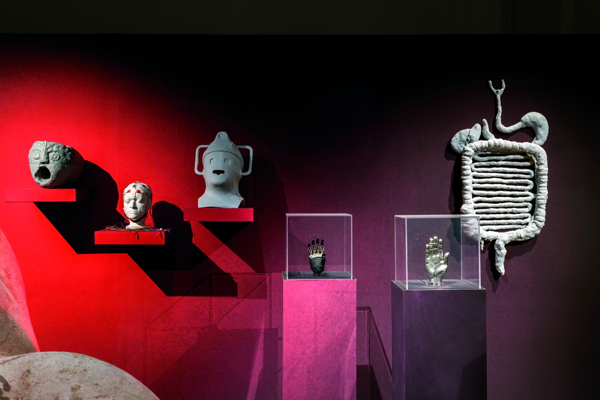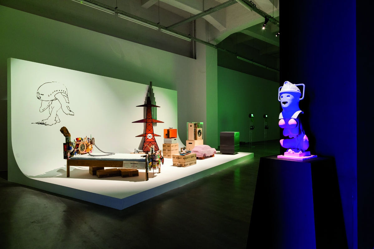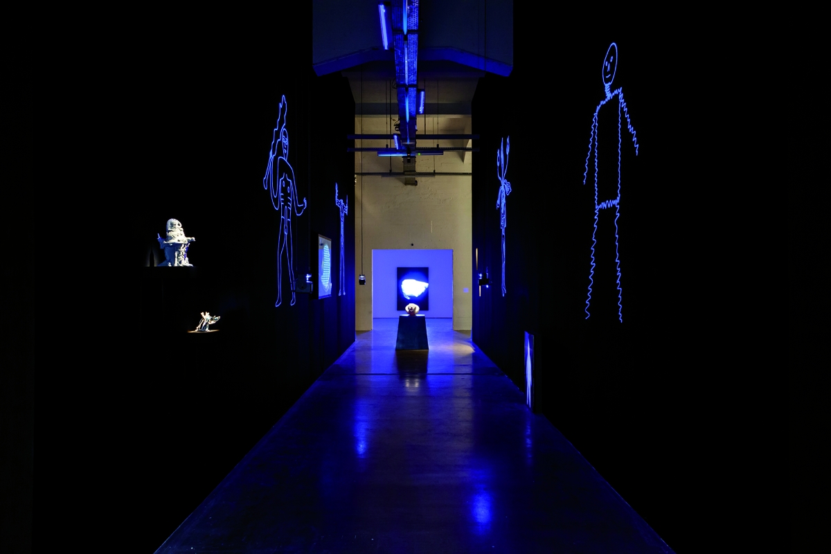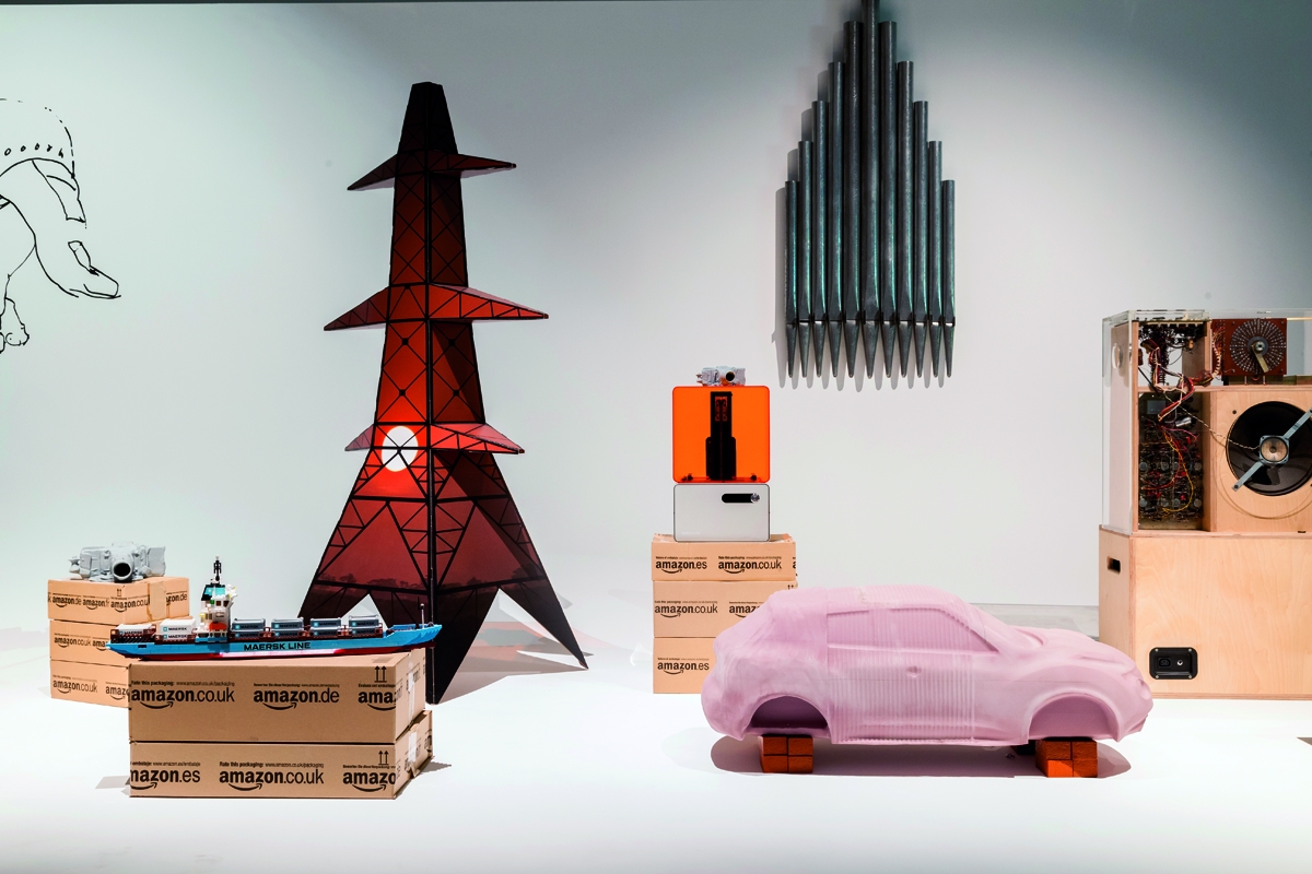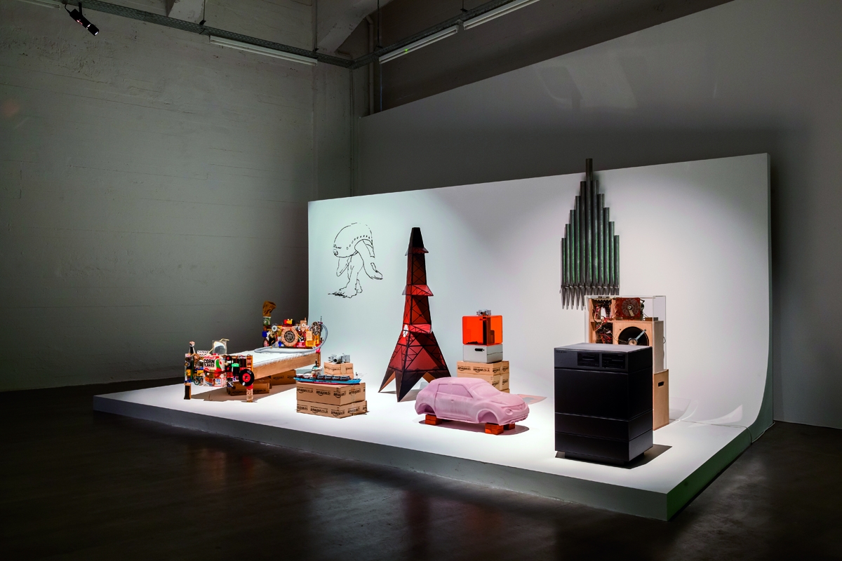 Les différentes versions du projet s’adaptent avec virtuosité à l’environnement dans lequel elles évoluent et, si les schémas principaux demeurent identiques, certains éléments voyagent d’un assemblage à l’autre : le gigantesque Felix gonflable passe d’une singulière symphonie avec le Woofer de Sander Mulder et la très ancienne jarre «Hapi canopic», à une glorification solitaire, quand de leur côté les boîtes Amazon viennent surligner l’accessibilité des biens par les voies de communication. Juxtaposés les uns aux autres, les objets suivent un principe de montage menant le propos dans plusieurs directions, offrant au spectateur la même position que celle dont se réclame l’artiste «producer and consumer, maker and viewer.» Mark Leckey, s’approprie les outils muséaux, universitaires, publicitaires, cinématographiques, commerciaux ou domestiques pour créer les dispositifs de présentation précisément nécessaires à son discours, une parole physique, chorale et sensorielle.